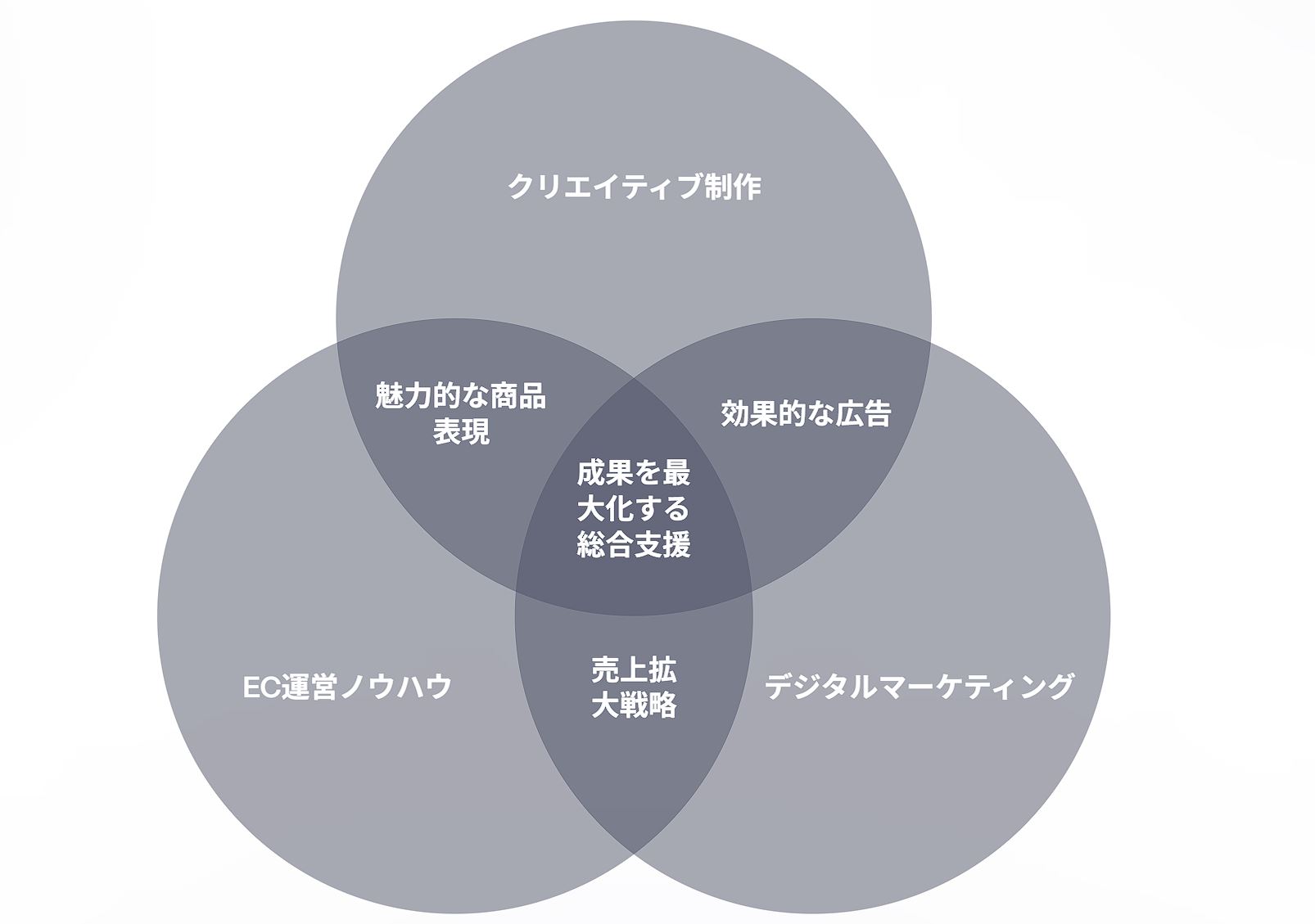 ECの仕組みづくりと成果創出をワンストップで支援するパートナーとして、あなたのビジネスの成長をコミットします。